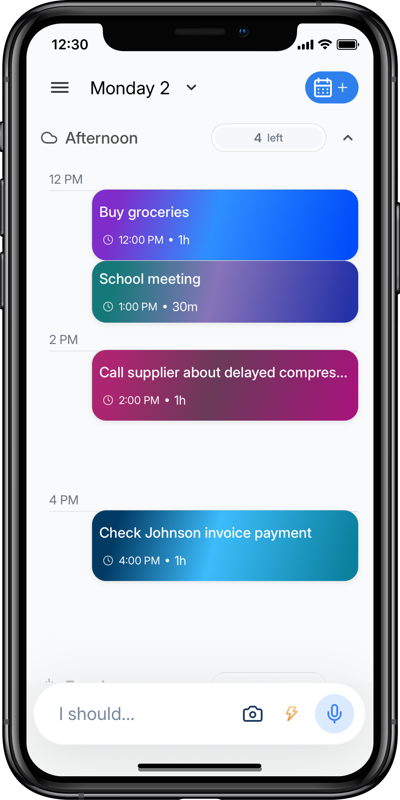 Capture tasks and notes in seconds - type, voice, or photo